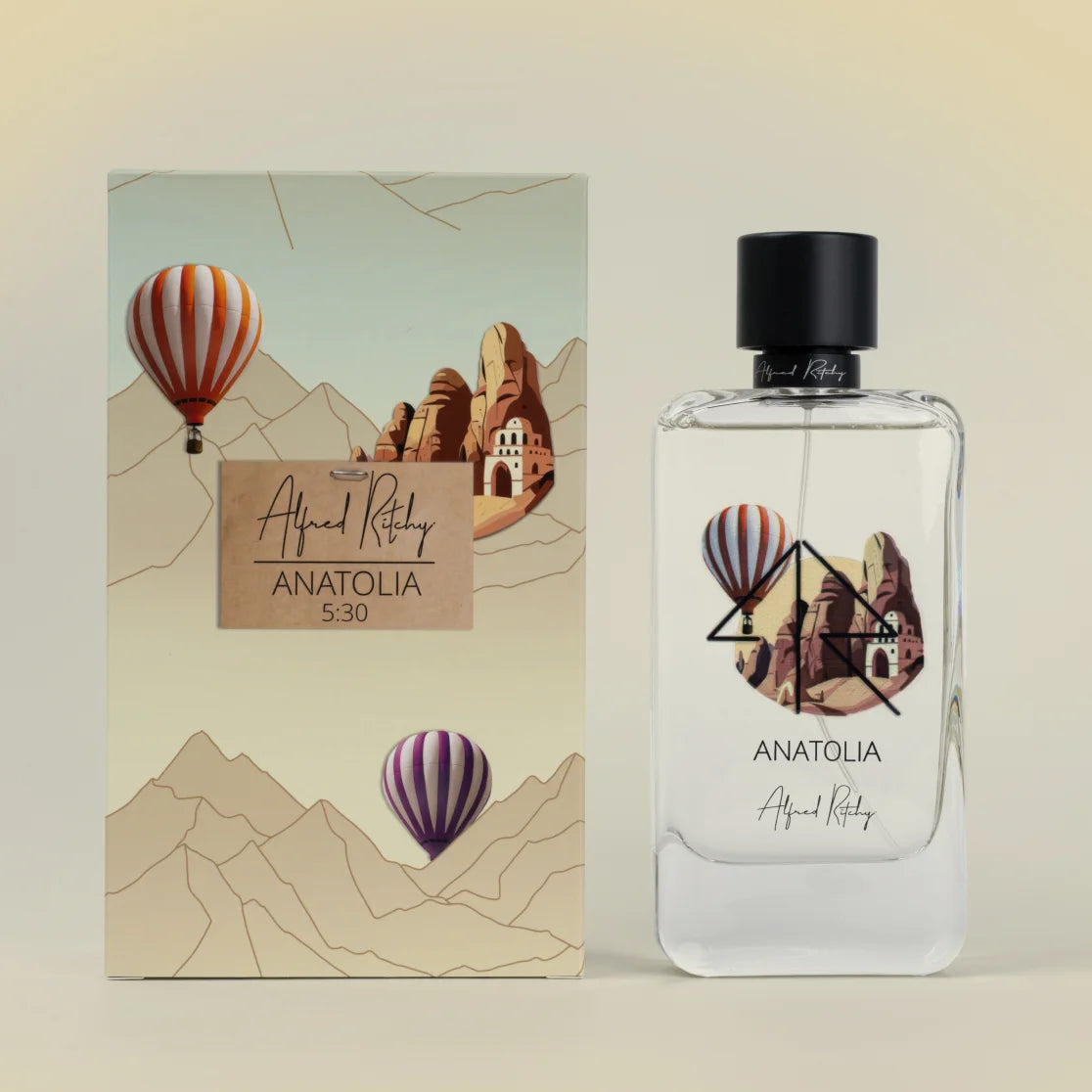 At dawn in Cappadocia, as hot air balloons rose against an orange sky, Alfred Ritchy noted the moment 05:30. The surreal beauty of Anatolia, with its ancient history and dreamlike landscapes, became his muse. From this inspiration, he created Anatolia, a citrus woody fragrance shaped by the magic of dawn, the whispers of time, and the timeless spirit of Turkey’s heartland.